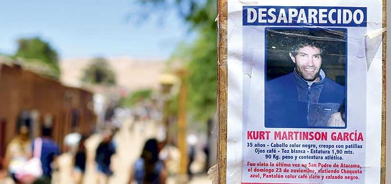 Kurt Martinson tenía 35 años para el momento de su desaparición a finales de 2014. Luego de un periodo viviendo en Bolivia se había radicado en San Pedro de Atacama y trabajaba como guía turístico en el Hotel Alto Atacama.