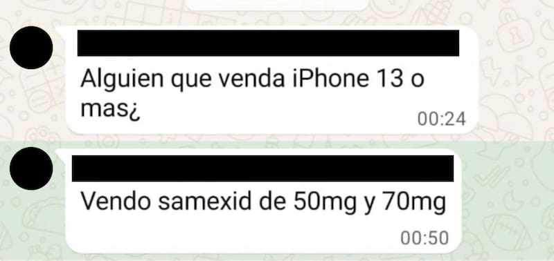 En las universidades también es popular adquirirlos aprovechando grupos de compra y venta de otros artículos que se crean en WhatsApp. Las preguntas sobre venta de medicamentos como clonazepam o diazepam, entre otros, abundan. Y se hacen abiertamente, sin esconder las intenciones.
