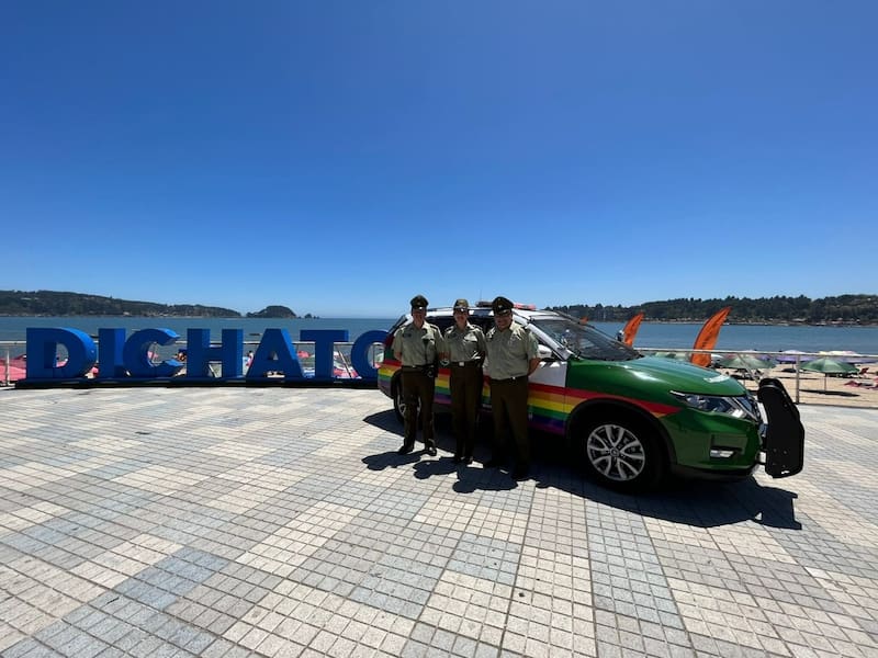 Este trabajo institucional lleva ya muchos años y cobró mayor figuración pública con motivo de la Marcha del Orgullo del 25 de junio de 2022, en la que se estrenaron los dos radiopatrullas con los colores de la diversidad y en la que Carabineros resguardó el recorrido y entregó información preventiva.