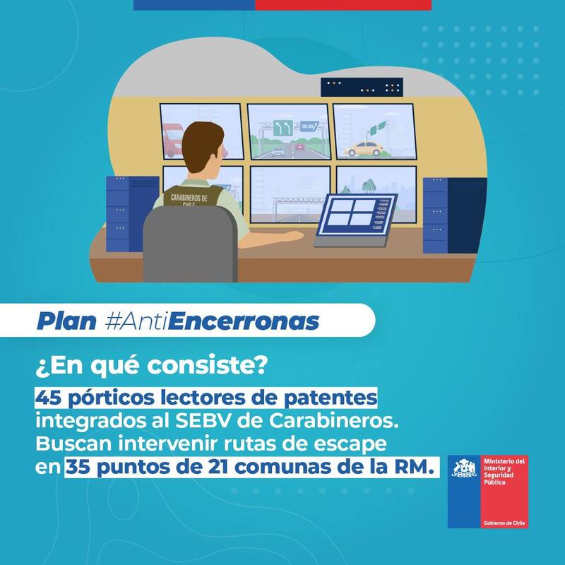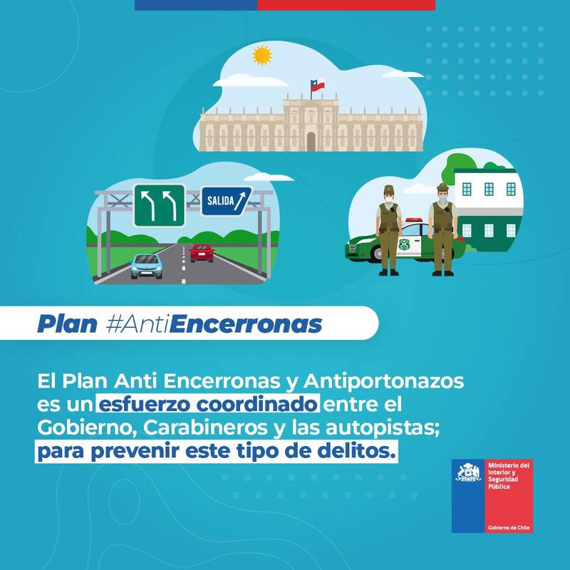 “Uno de los modos delictuales que está afectando a nuestra sociedad son los llamados portonazos y encerronas, que ocurren especialmente en la RM, que concentra más del 90% de este tipo de delitos. Conscientes de lo que esto significa en materia de temor e inseguridad para las familias chilenas y para llevar más tranquilidad ys eguridad a todos quienes transitan por nuestras calles y carreteras, nuestro gobierno ha preparado un plan antiencerronas y antiportonazos, que incluye estrategia, operación, tecnología y coordinación”, aseguró el Mandatario.