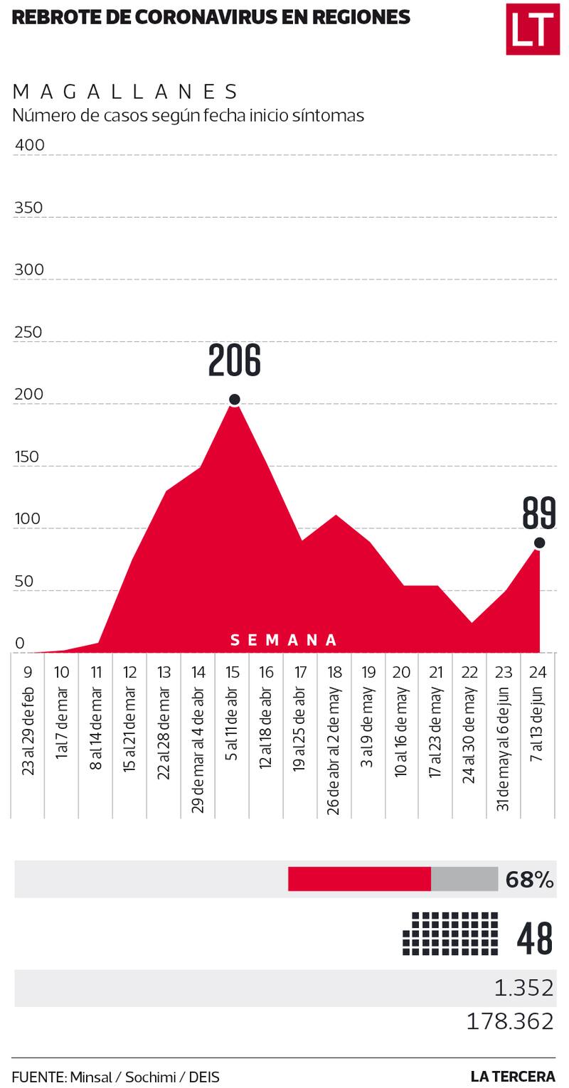 Un brote de Covid-19 en una planta pesquera volvió a disparar los casos de coronavirus en Punta Arenas. La ciudad, que pasó por una primera ola de contagios en abril, tuvo una cuarentena que duró cinco semanas. Sin embargo, hoy la situación es otra. “Estamos muy preocupados. Lo dijimos cuando se levantó la cuarentena, que no había espacio para un relajamiento”, dice el alcalde de Punta Arenas, Claudio Radonich. Los datos muestran que la cifra bajó a 24 contagios a fin de mayo, pero ahora subió y está en 89 personas infectadas.