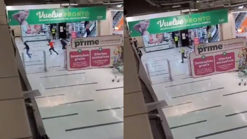 A través de un video publicado en redes sociales, se registró el sonido de los disparos desde el supermercado en el centro comercial.