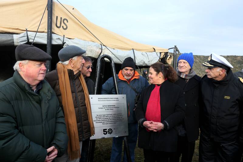 “En este lugar funcionó, entre el 21 de diciembre de 1973 y el 26 de septiembre de 1974, el campo de concentración de detenidos políticos de Río Chico, Isla Dawson, instalado por la dictadura cívico militar. Para que nunca más”, dice la placa.