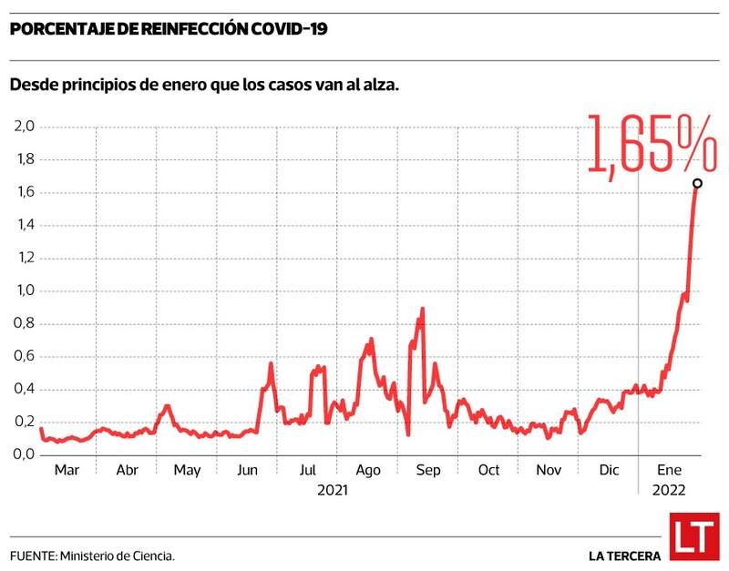 Aunque se mantienen bajos en relación a los casos totales, la proporción de pacientes que por segunda vez cursan la enfermedad muestran un crecimiento exponencial. Según los expertos, la aparición de la nueva variante ómicron y su capacidad para evadir la inmunidad estarían detrás del incremento.