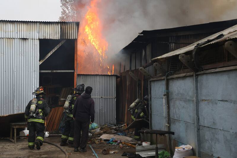 Los funcionarios de cuatro comunas concurrieron para combatir las llamas, mientras que en las primeras horas de la emergencia se desconocía siquiera qué se encontraba dentro de los galpones quemados.
