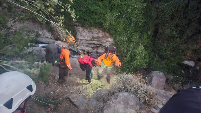 Pese a que en primera instancia Carabineros envió voluntarios al lugar, estos no pudieron descender a la zona en que se encontraban atrapadas ambas personas por la complejidad del terreno.