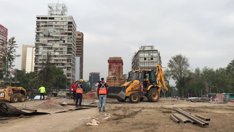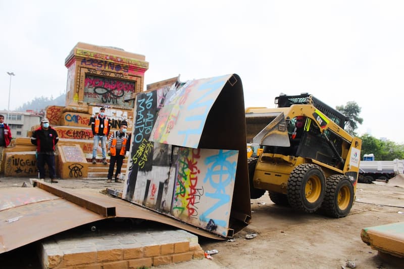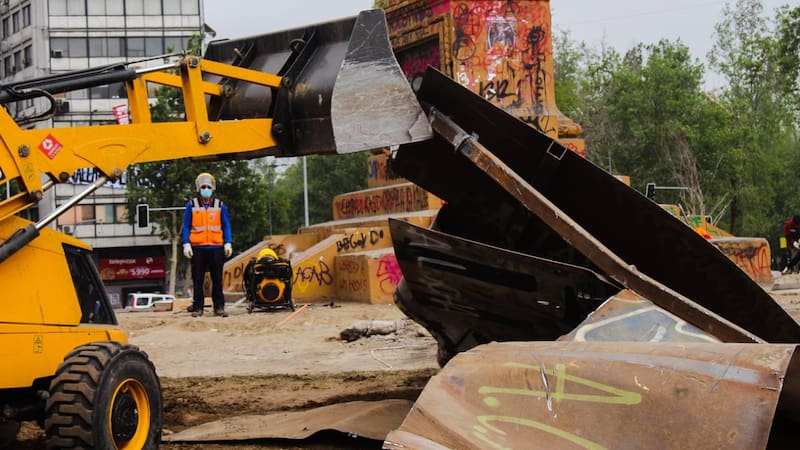 El delegado presidencial, Emardo Hantelmann, solicitó el retiro de materiales que componían el cierre perimetral de la escultura del general Manuel Baquedano luego de ser destruida por un grupo de manifestantes que logró escalar hasta el sitial que sostenía al monumento. “Los trabajos que se efectuaron en torno a la base de la estatua tienen el objetivo de mantener la seguridad de los vecinos y vecinas que circulan por el sector y evitar situaciones que puedan generar un accidentes para quienes transitan por el lugar”, señaló la autoridad durante la ejecución de las tareas.