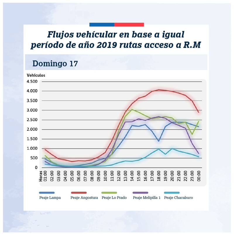 Además de esto, desde el Mop hicieron un llamado a considerar los horarios punta del período 2019 para así planificar el retorno: