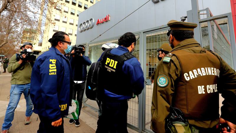 La Brigada Investigadora de Robos Concón de la PDI realiza labores para dar con el paradero de los responsables de la sustracción de una veintena de vehículos de alta gama desde el local de la automotora Cartoni, concesionaria de la marca Audi, en la avenida Libertad de Viña del Mar.