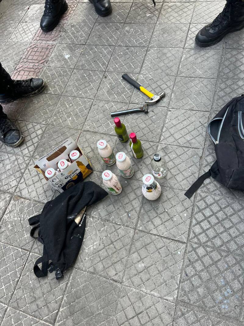 Paralelamente, se detuvo a dos personas en las inmediaciones de la Alameda con calle Cienfuegos. Según señalaron desde Carabineros, portaban elementos para realizar desórdenes.