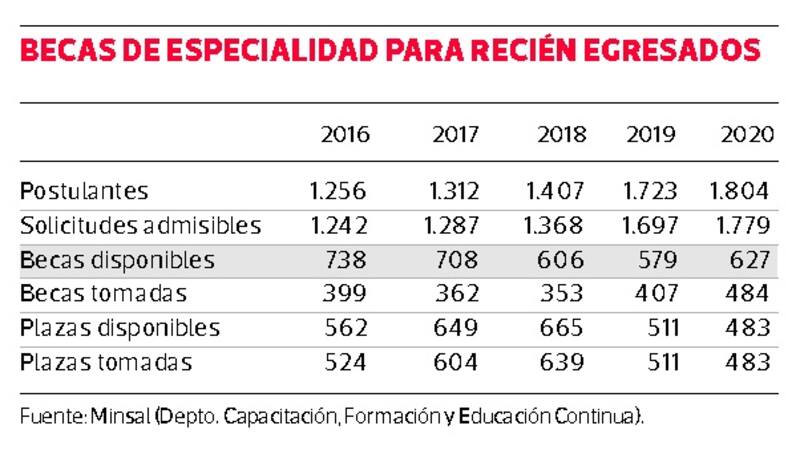 Los plazos del proceso están en suspenso, por el retraso que causó la pandemia en los campos clínicos. Mientras, se trabaja una reasignación de becas, para dirigirlas a las áreas con mayor déficit en la red pública.