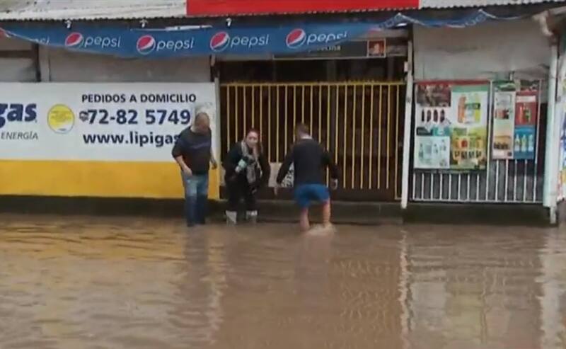 Un verdadero río parecían las principales calles de la comuna de Santa Cruz, Región de O’Higgins, este miércoles debido a las lluvias que se han registrado en los últimos días en la zona centro sur del país.
