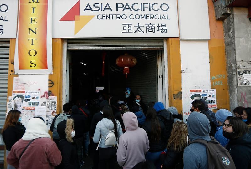 Grandes aglomeraciones se registraron este lunes en el acceso al Centro Comercial Asia Pacífico -conocido como “mall chino”- en Santiago, comuna que había avanzado hoy hacia la etapa de Transición en el Plan Paso a Paso.