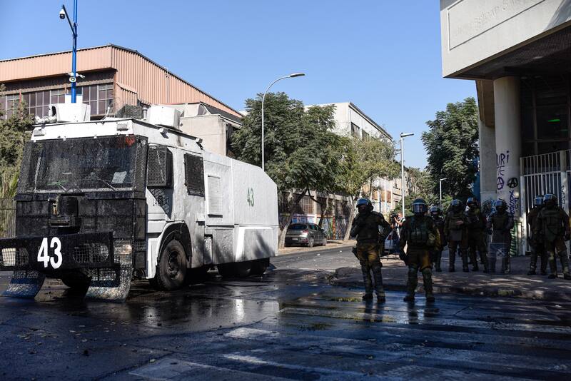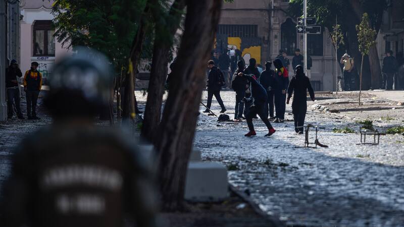 El comandante de Carabineros Gorka Verde señaló que “alrededor de las 9 de la mañana, cerca de 30 ó 40 supuestos estudiantes del Aplicación salieron, entorpeciendo la vía pública, generando barricadas, cortando el tránsito y posteriormente lanzando objetos contundentes y elementos incendiarios a personal de Carabineros”.