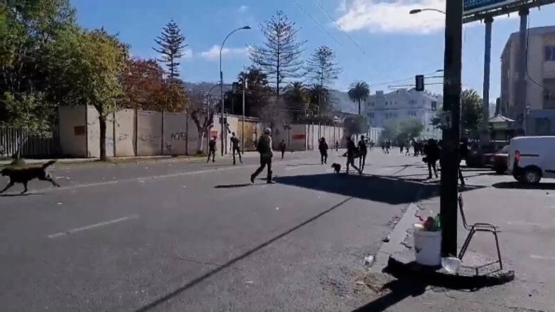 Según información de Carabineros, cerca de mil personas se desplazaron por avenida Pedro Montt a la altura de calle Uruguay, donde algunas de ellas encendieron barricadas. Debido a esto, efectivos policiales comenzaron a operar el carro lanzaguas para dispersar a los asistentes.