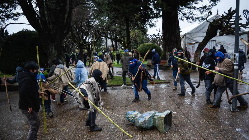 Sin embargo, la protesta que se reunió en la Plaza de Armas de la comuna acabó con enfrentamientos entre los asistentes a la manifestación y carabineros. Incluso, se derribaron bustos de Bernardo O’Higgins, José Manuel Balmaceda y Arturo Prat, como ha ocurrido en los últimos meses con estatuas y monumentos de sujetos como Pedro de Valdivia o Cornelio Saavedra. También, se registró un corte de ruta en el acceso a la comuna.