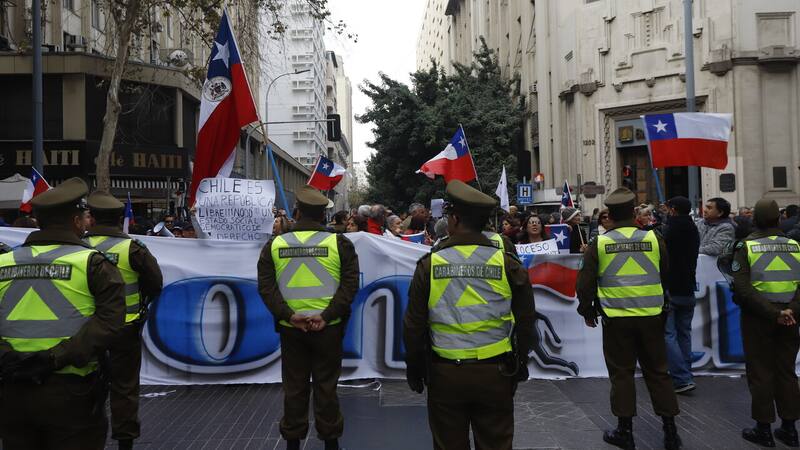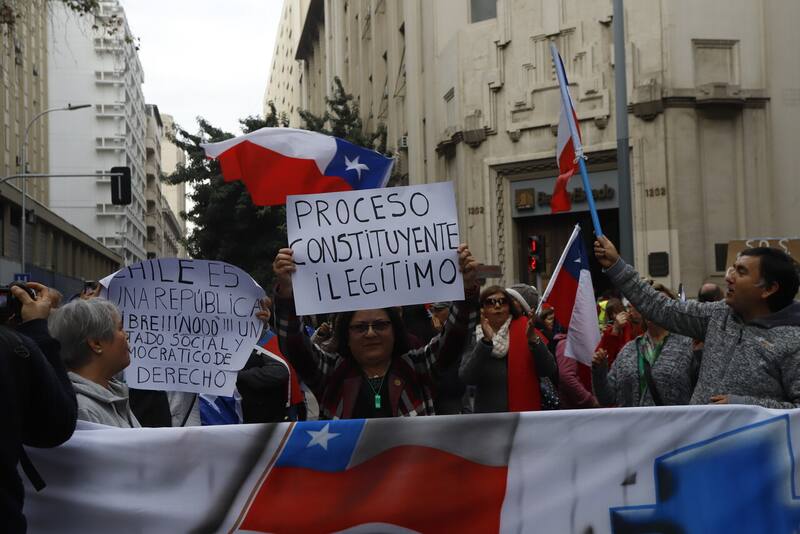 Sin embargo, a solo unas cuadras del ex Parlamento, un grupo de manifestantes se encuentra protestando con pancartas y gritos al unísono en contra del proceso constitucional.