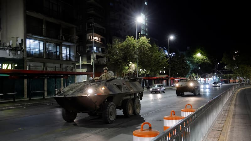 Militares recorren las calles de Santiago en carros blindados para ayudar a las policías en las labores de patrullaje en el marco del estado de excepción.