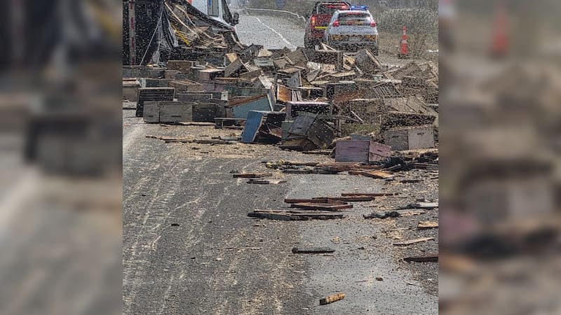 Un accidente se produjo la tarde este jueves en el kilómetro 37 de la ruta 5 Norte: un camión que transportaba múltiples cajas con abejas se volcó.