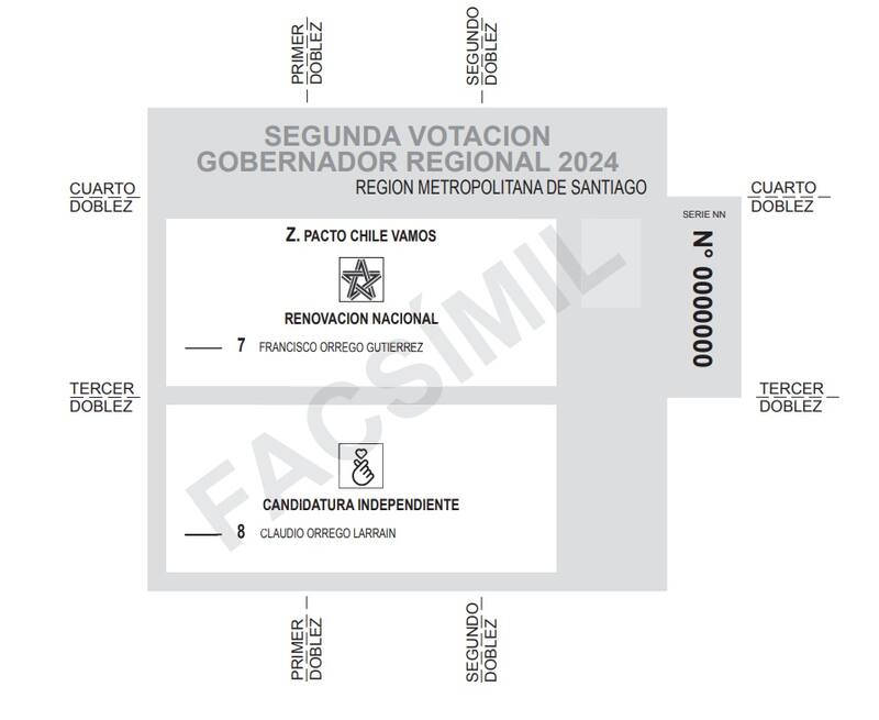 El Servel reveló los facsímiles que recibirá cada sufragista, un ejemplo de ellos es el siguiente, donde se muestran los candidatos de la Región Metropolitana.
