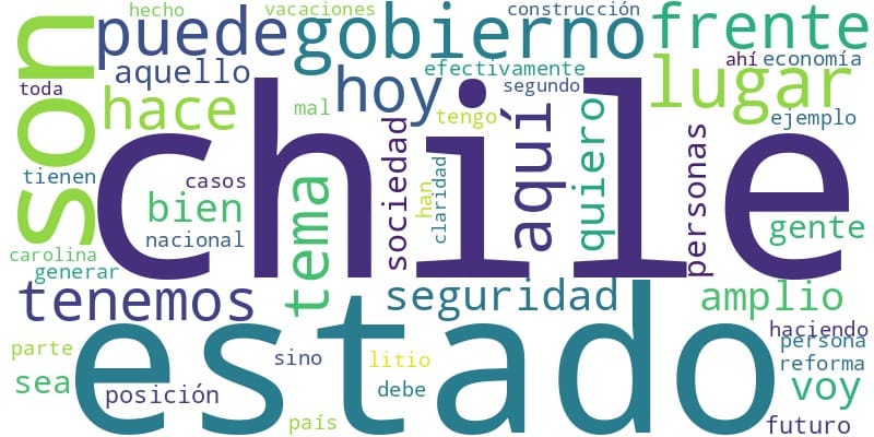 En casi dos horas, los candidatos del pacto Unidad por Chile —Carolina Tohá (Socialismo Democrático), Gonzalo Winter (Frente Amplio), Jeannette Jara (Partido Comunista) y Jaime Mulet (FRVS)— protagonizaron el jueves el debate de primarias presidenciales 2025 organizado por La Tercera y Radio Duna, en el Centro de Eventos Hilaria. Los énfasis discursivos de cada postulante quedaron reflejados en el lenguaje que utilizaron. Este análisis recopila las 50 palabras más repetidas por cada uno, excluyendo conectores, artículos, verbos comunes y adjetivos genéricos, a través de la inteligencia artificial. La comparación muestra cómo cada candidatura insistió en determinadas ideas fuerza: desde “Estado” y “derechos”, hasta “desarrollo”, “seguridad” y “empresas”.