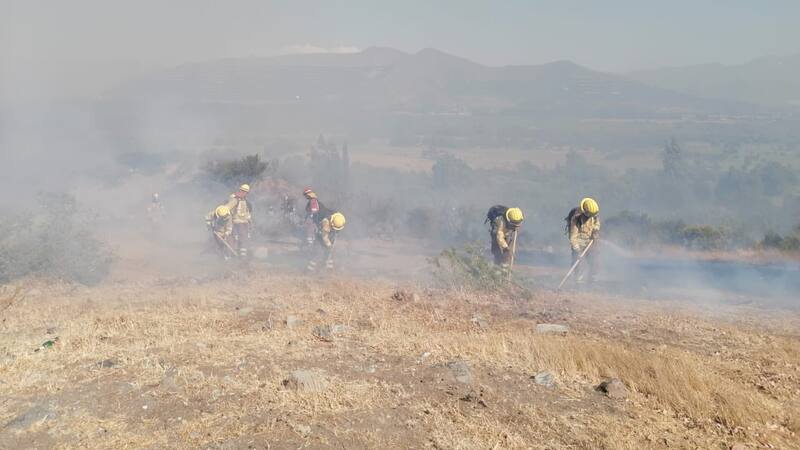 Ocho carros de bomberos, tres brigadas de la Conaf y un helicóptero se trasladaron al lugar para combatir el fuego.