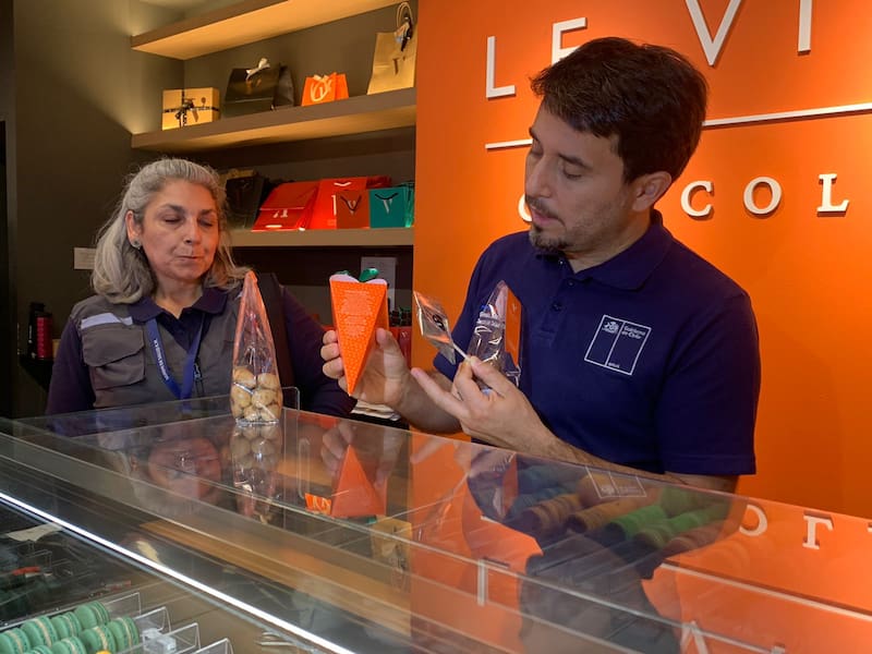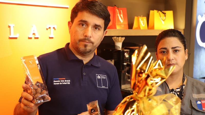 El seremi de Salud de la Región Metropolitana, Gonzalo Soto, encabezó la fiscalización de una chocolatería ubicada en Santiago, revisando que se cumpliera con la Ley de Etiquetado.