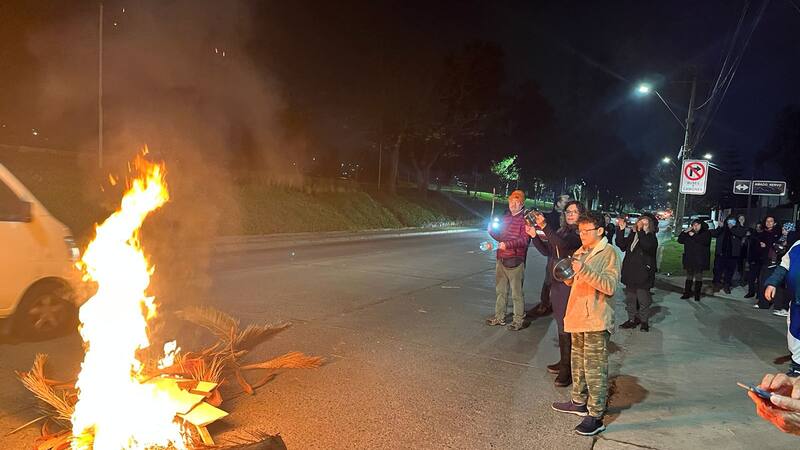 En La Reina, esta noche los vecinos de la calle Amado Nervo salieron a prender barricadas incendiarias en avenida Tobalaba, ante la falta de suministro, la que se arrastra por seis jornadas.