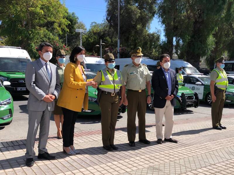 Entre los motivos de su visita estuvo la participación en una ceremonia que se realizó en el frontis del edificio Pedro León Gallo, para concretar la entrega de 17 vehículos policiales a la III Zona de Carabineros, los que fueron adquiridos por el gobierno regional como una medida en avance de seguridad.