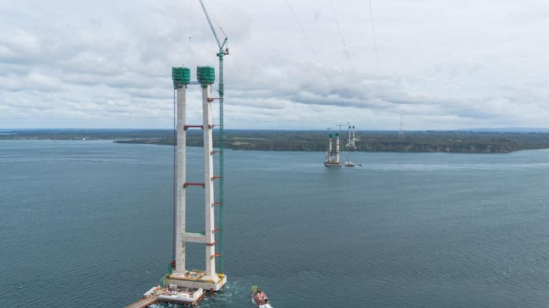 El megaproyecto tiene un avance físico que ya supera el 63% y reducirá los tiempos de traslado de los 40 minutos que demora actualmente el cruce en barcaza a tan solo cuatro minutos a través de la estructura.
