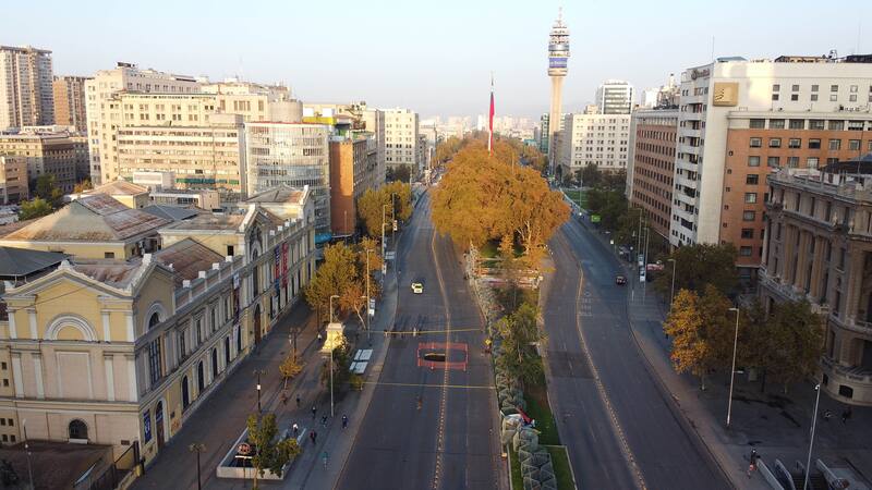 Socavón en Alameda con Arturo Prat genera congestión en el centro de Santiago
