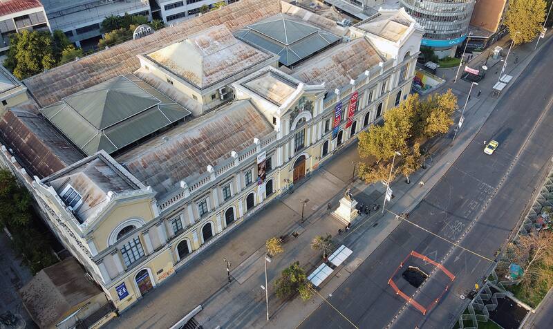 Un socavón en plena calzada sur de la Alameda a la altura de Arturo Prat, justo al frente de la casa central de la Universidad de Chile, genera a esta hora una alta congestión en el centro de Santiago.