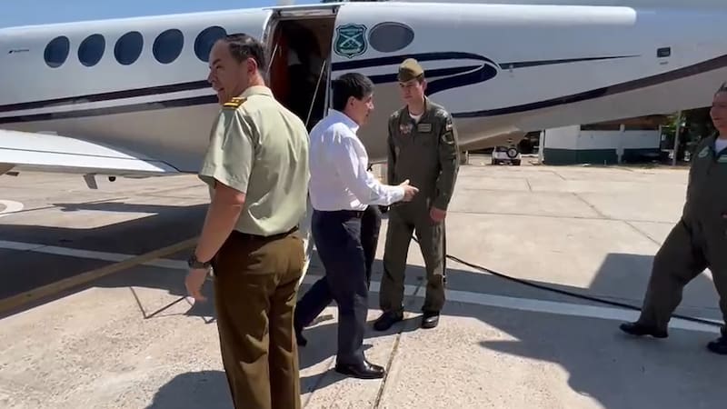 Las autoridades abordaron una aeronave de Carabineros en la base de Tobalaba y viajaron junto al director nacional de Orden y Seguridad de la policía uniformada, el general inspector Enrique Monrás, y el subdirector de Inteligencia, Crimen Organizado y Seguridad Migratoria de la Policía de Investigaciones, prefecto general Luis Silva.