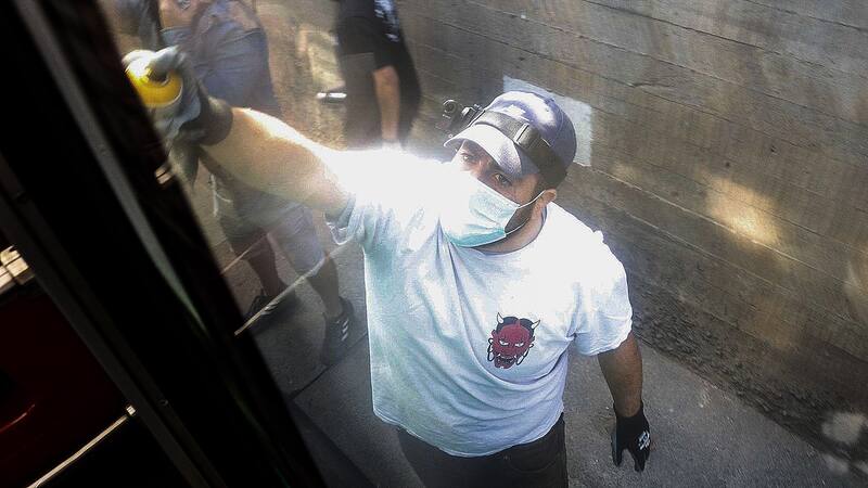 Un grupo de individuos fue sorprendido grafiteando un tren de Metro cuando este se detuvo entre las estaciones Rondizzoni y Parque O’Higgins de la línea 2 del ferrocarril subterráneo.