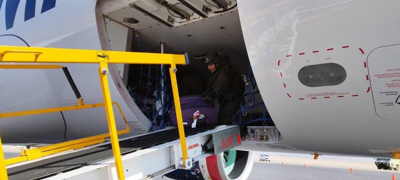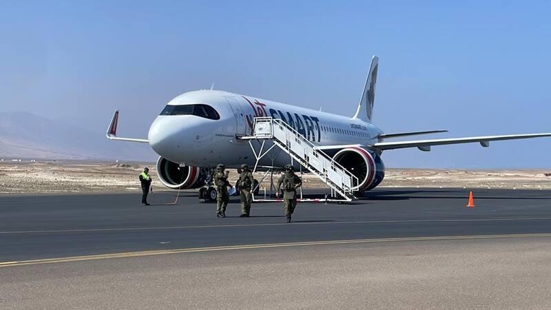 Luego de recibir el aviso, asistió al Aeropuerto Andrés Sabella un equipo del Grupo de Operaciones Especiales (GOPE) de Carabineros de Chile en Antofagasta.