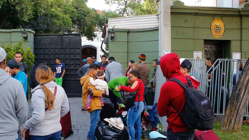 El régimen de Nicolás Maduro decidió cerrar indefinidamente las labores de la embajada de Venezuela en Chile, lo que ha generado que decenas de migrantes se reúnan afuera del recinto para exigir una solución.