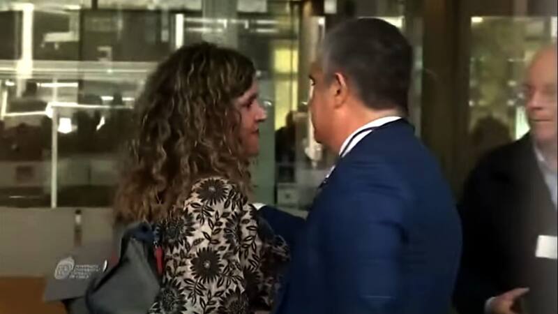 El letrado intentó cortar el paso de Vial con su brazo y ella lo evitó. Cámaras de los canales de TV que se encontraban en el lugar registraron el momento.