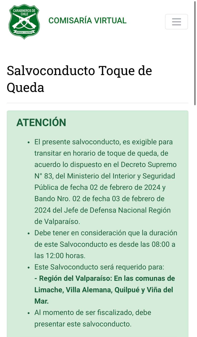 Carabineros de Chile informó que ya se puede obtener el documento a través de su plataforma virtual para transitar por la Región de Valparaíso.