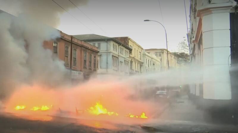 Trabajadores portuarios inician paro nacional con barricadas incendiarias en Valparaíso