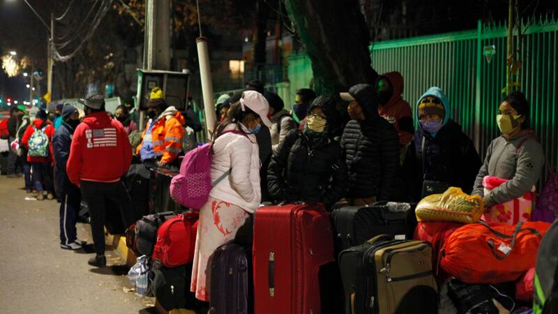 Trasladan a residencias sanitarias y albergues a 150 bolivianos que acampaban frente al consulado de su país en Santiago