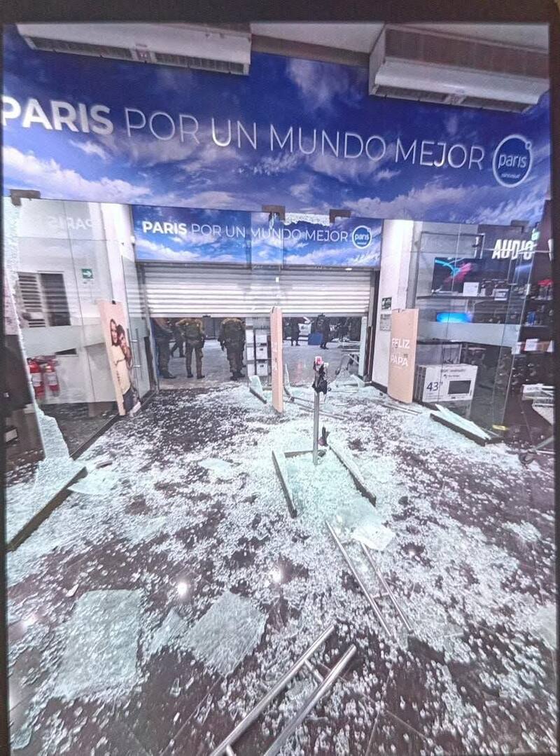 Hecho afectó a la tienda París de Av. Argentina, desde donde una decena de asaltantes sustrajo diversos artículos electrónicos. Un civil resultó herido con arma blanca, mientras que tres antisociales fueron detenidos.