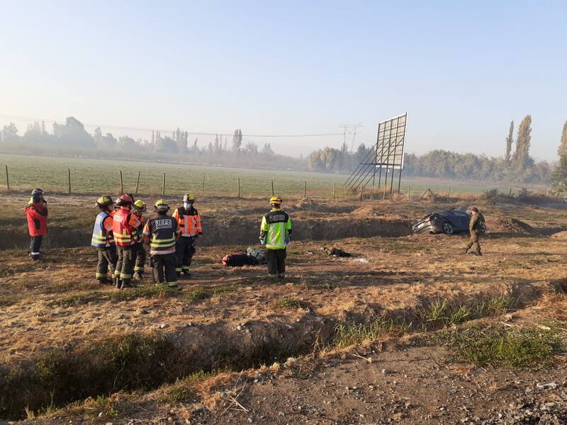 Tres personas, mayores de edad, resultaron fallecidas tras volcar el vehículo en el que se desplazaban en dirección al norte por la Ruta 5 Sur, a la altura del kilómetro 77, en el sector Las Mercedes, en Graneros, Región de O’Higgins.