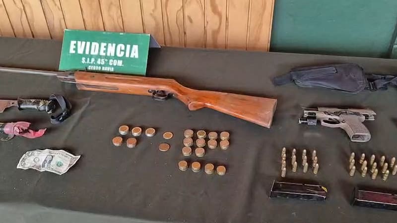 Además, se decomisó armamento, correspondiente a una pistola calibre 9 milímetros con dos cargadores y 27 municiones, una pistola a fogueo con su respectivo cargador y municiones, un rifle de aire comprimido y dos armas blancas, además de otras especies presuntamente asociadas a los delitos investigados.