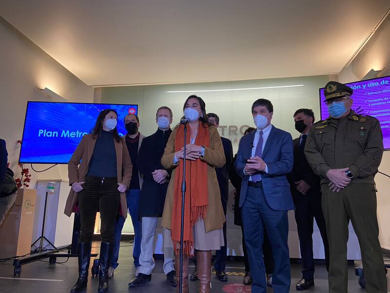 El plan fue presentado por la ministra del Interior y Seguridad Pública, Izkia Siches, en una actividad de monitoreo realizada en el edificio corporativo de Metro -en Alameda 1424- en la que participaron también el titular de Transportes, Juan Carlos Muñoz; el subsecretario del Interior, Manuel Monsalve; el gerente general de Metro, Felipe Bravo; la delegada presidencial de la Región Metropolitana, Constanza Martínez; el general director de Carabineros, Ricardo Yáñez y el general inspector Enrique Monrás.