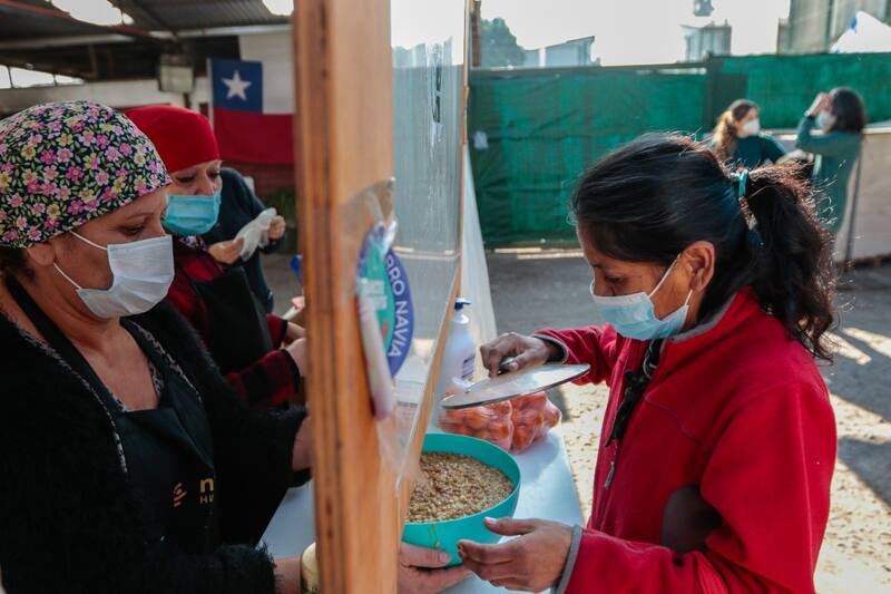 Eso hasta mayo de 2020 cuando, junto a otras siete mujeres, decidió empezar a preparar almuerzos en la sede vecinal para residentes de la comuna que hubieran perdido sus empleos. “Esto lo hacemos para palear la cesantía y el hambre de nuestros vecinos, pero también viene gente de otras comunas. ¿Será que les gusta nuestra mano?”, añade sonriendo.