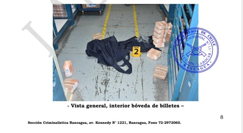 Antes de la formalización del martes 20, se produjo uno de los últimos momentos en la cronología de la primera etapa del caso. El lunes a las 18.27 el fiscal Carlos Fuentes, quien lleva la causa, recibió un correo de la gerenta de Brinks, Daniela Bustos, con el monto robado, lo que hasta ese momento era desconocido. “Estimamos que el monto preliminar y aproximado de lo sustraído alcanza alrededor de los 12 mil millones de pesos”, se señala en esa comunicación, puntualizando que la información es “crítica” para los clientes y los “seguros involucrados”. Dinero que, por cierto, sigue sin aparecer.