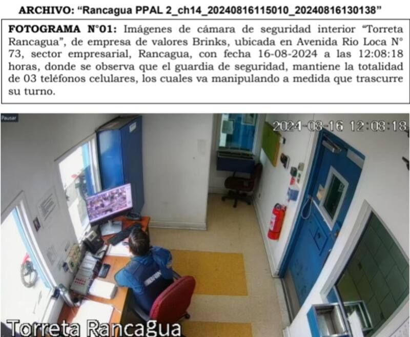 A las 12.08, el guardia comienza una revisión de cámaras que dan hacia el exterior. De acuerdo a los registros de las cámaras internas de su caseta, el trabajador mantenía tres teléfonos celulares, que iba manipulando.