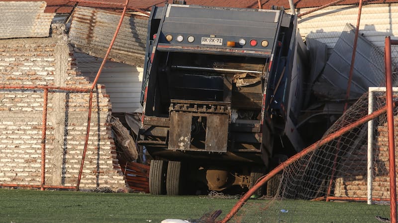 Por Juan Pablo AndrewsUn camión de la basura termina incrustado en un motel en La Pintana