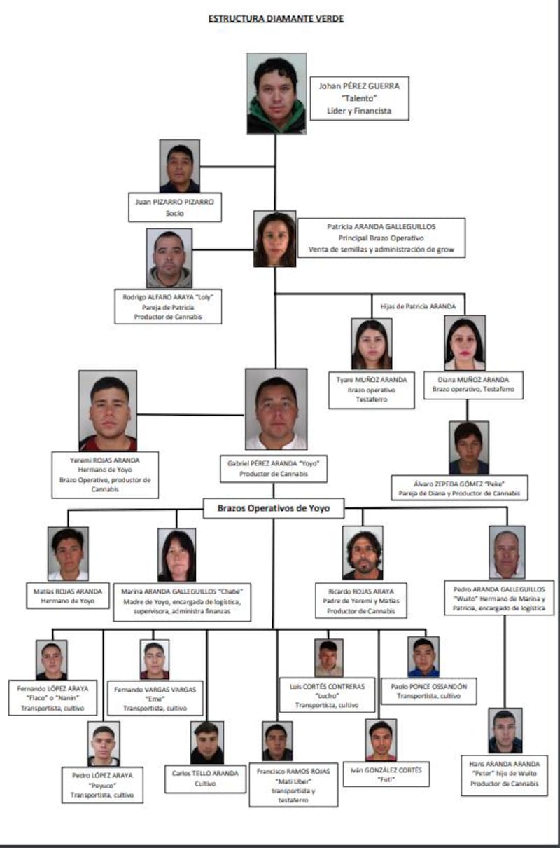 Además de Aranda, Pérez trabajaba con Juan Pizarro, su mano derecha, quien también lo acompañaba a comprar semillas en el extranjero. Ellos tres eran las cabezas de la organización. Pero, además, una veintena de otras personas participaban de la operación: entre familiares de Aranda, parejas de sus hijas y conocidos fueron ingresando inversores, vendedores y trabajadores a las plantaciones.