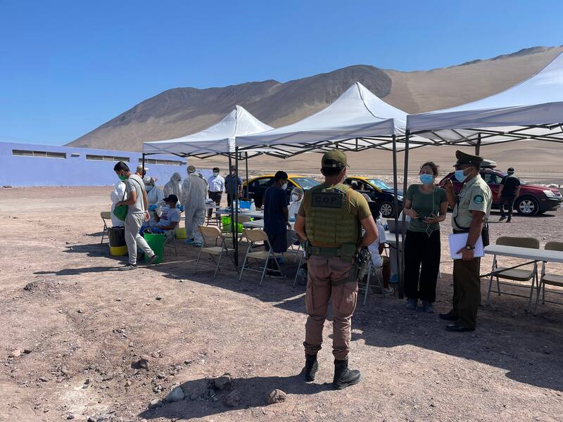 Los extranjeros llegan al sitio caminando o en buses dispuestos por la autoridad. Para ingresar, deben presentar un examen PCR de hasta 72 horas de vigencia o haber salido de una residencia sanitaria. En la Seremi de Salud de la región explican que no tienen asignaciones sobre el recinto, pero que apoyan cuando desde la Delegación Presidencial lo solicitan.